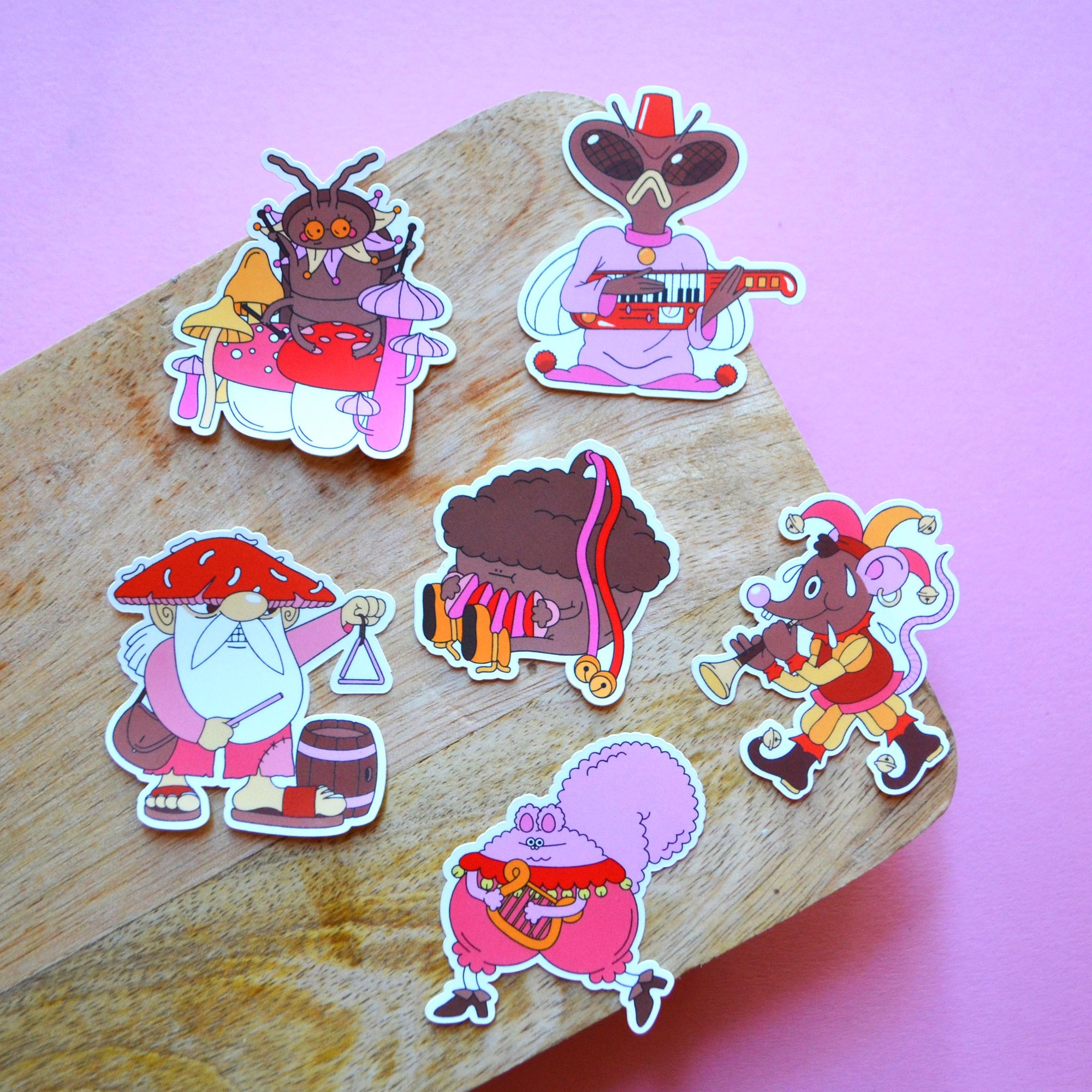 Packs of 6 stickers, designed in collaboration with the artist Duchrien.