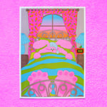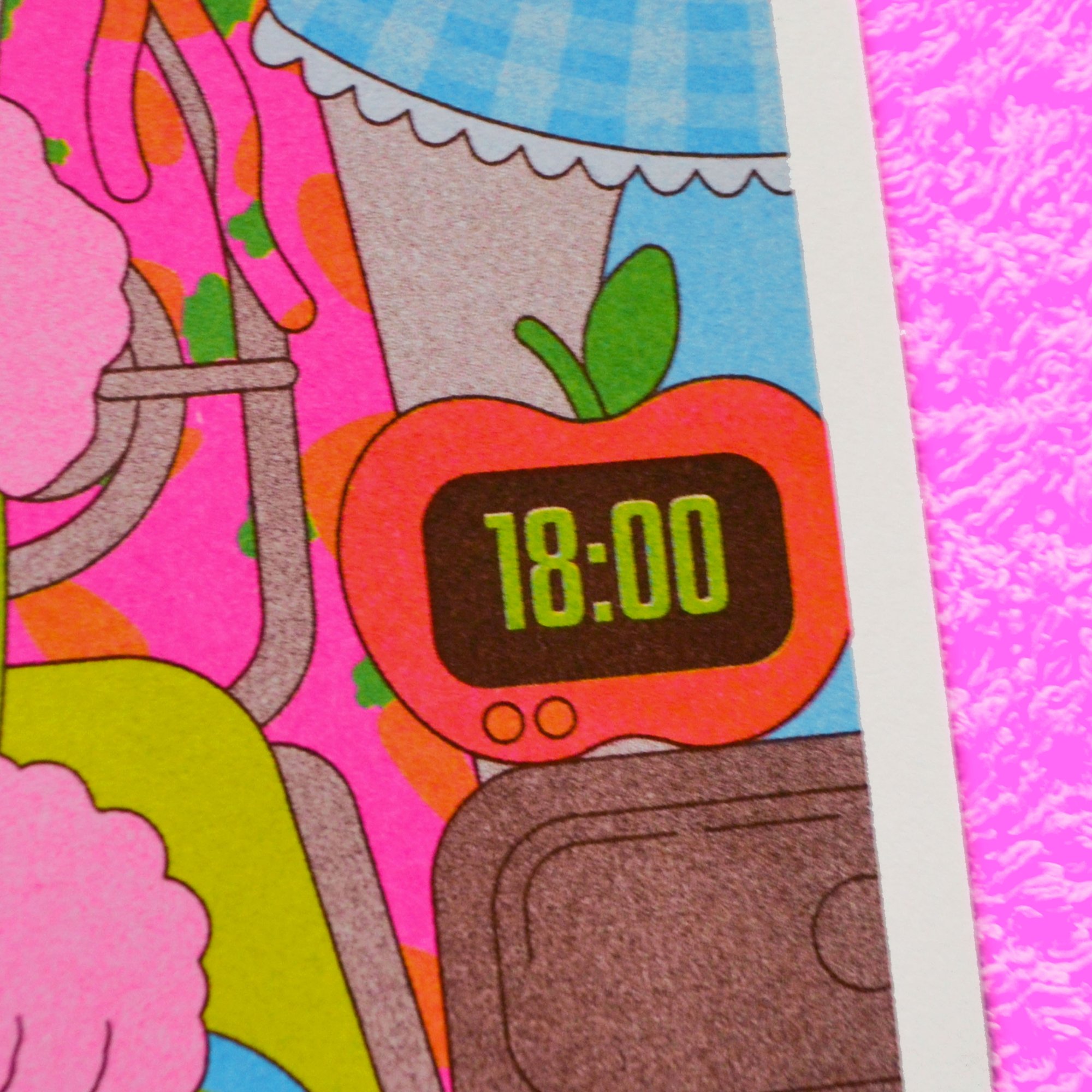 4 colors riso print (brown/fluo pink/yellow/aqua).