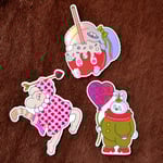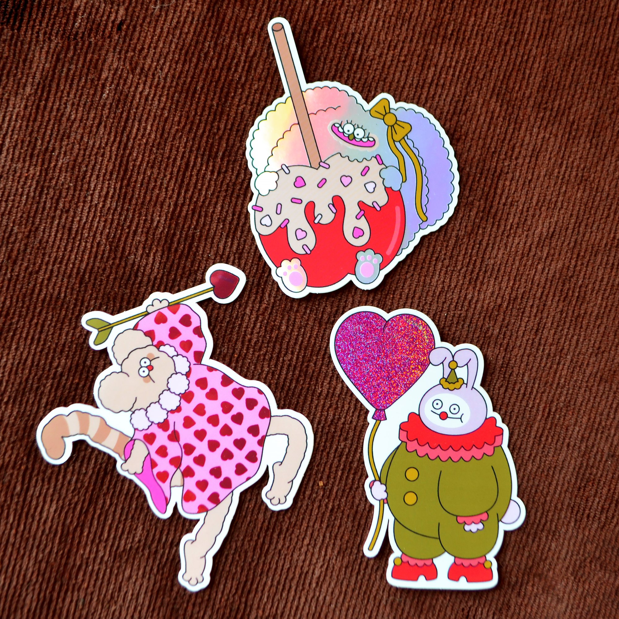 Packs of 3 stickers, with shiny or glitter effects.
